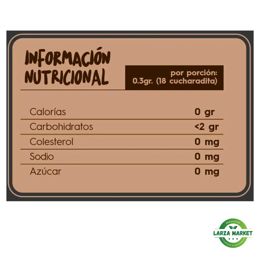 DESCRIPCIÓN: Nuestra stevia es 100% natural, cultivada en Cusco. Para disipar el sabor amargo de la stevia se ha agregado un 10% de yacón, otro endulzante 100% natural. Sin sucralosa, sin azúcar, sin eritritol, sin maltodexetrina, sin aspartamen ni ningún químico añadido que dañan la mucosa intestin...